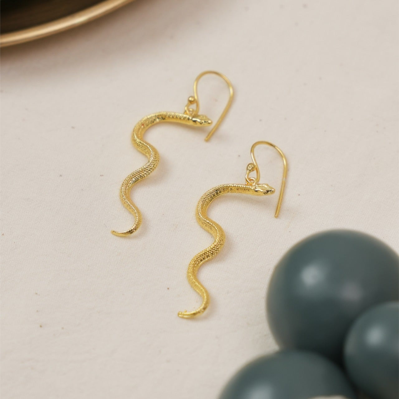 Graceful, bold, and steeped in ancient symbolism — Nagini is a striking handcrafted earring inspired by the elegance and mystery of the serpent. In Indian mythology, Nagini is the divine serpent goddess — a symbol of transformation, feminine energy, and protection.